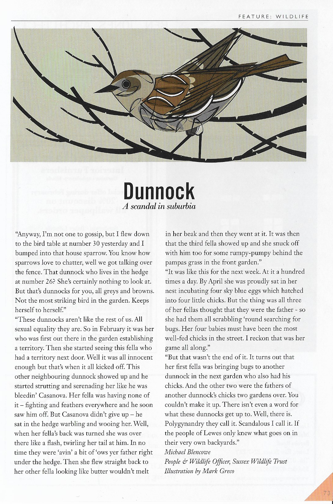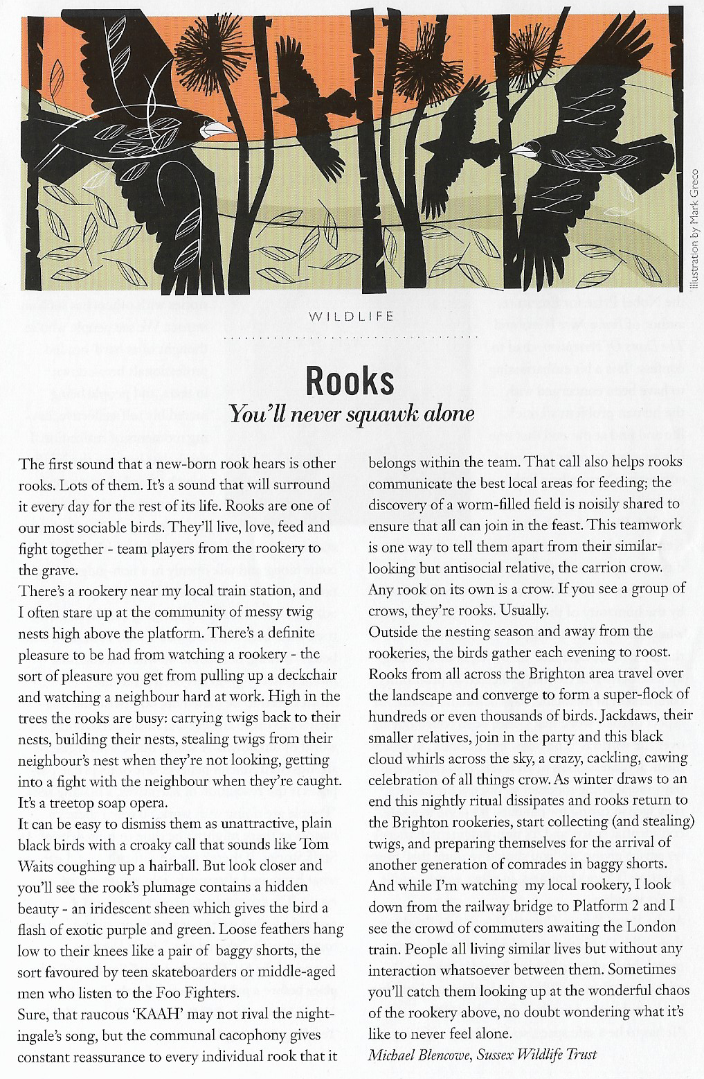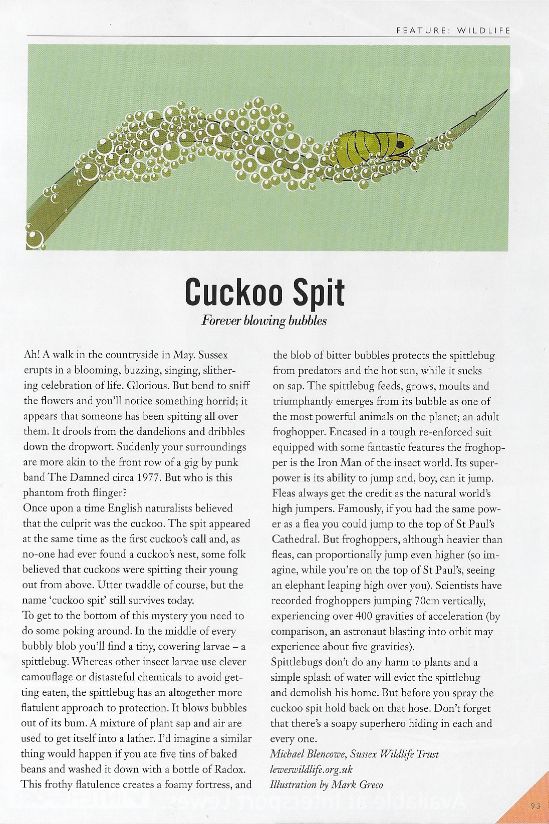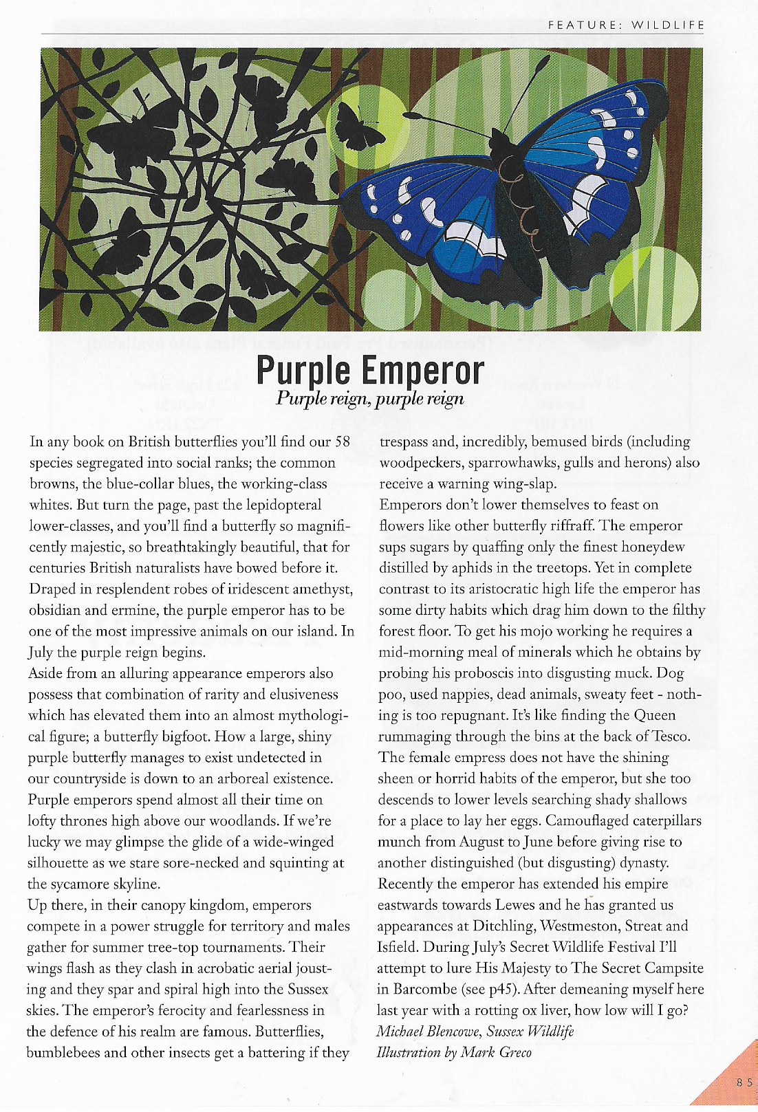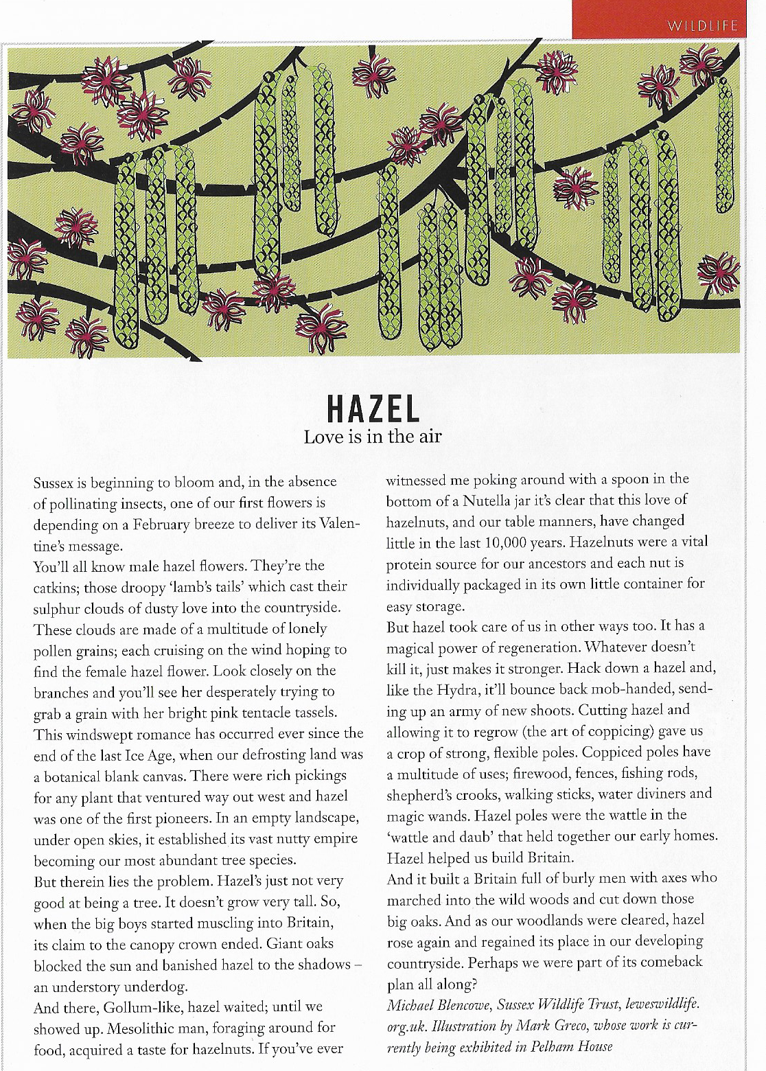 Michael was the monthly wildlife columnist for the much loved (and much missed) Viva Lewes magazine writing 106 articles from 2012 until its final edition in 2020. Each of Michael’s articles highlighted a local species and was accompanied by a brilliant, unique illustration by local wildlife artist Mark Greco. https://www.markgrecodesign.com/