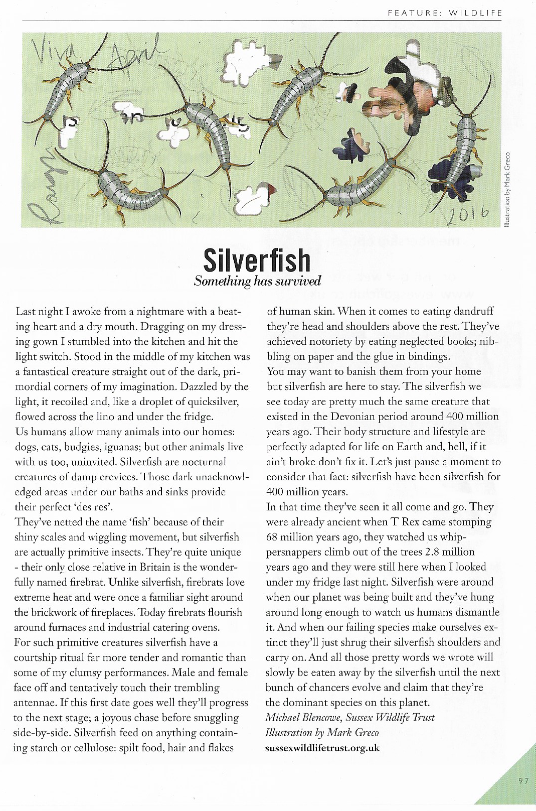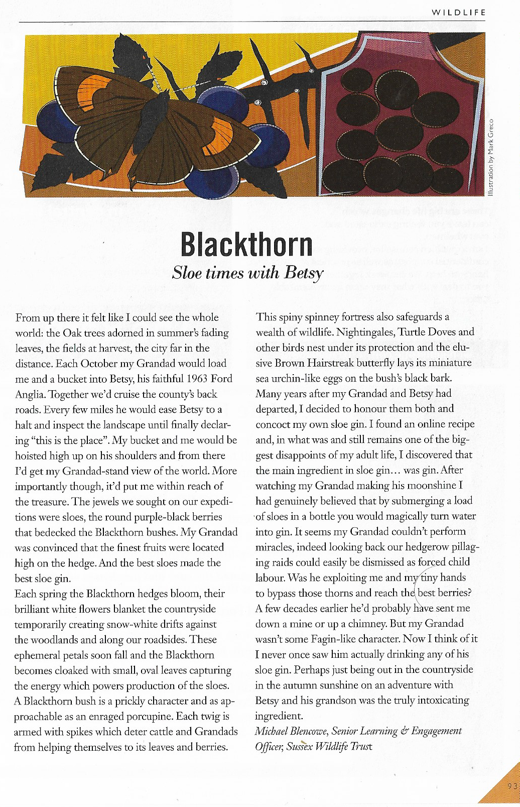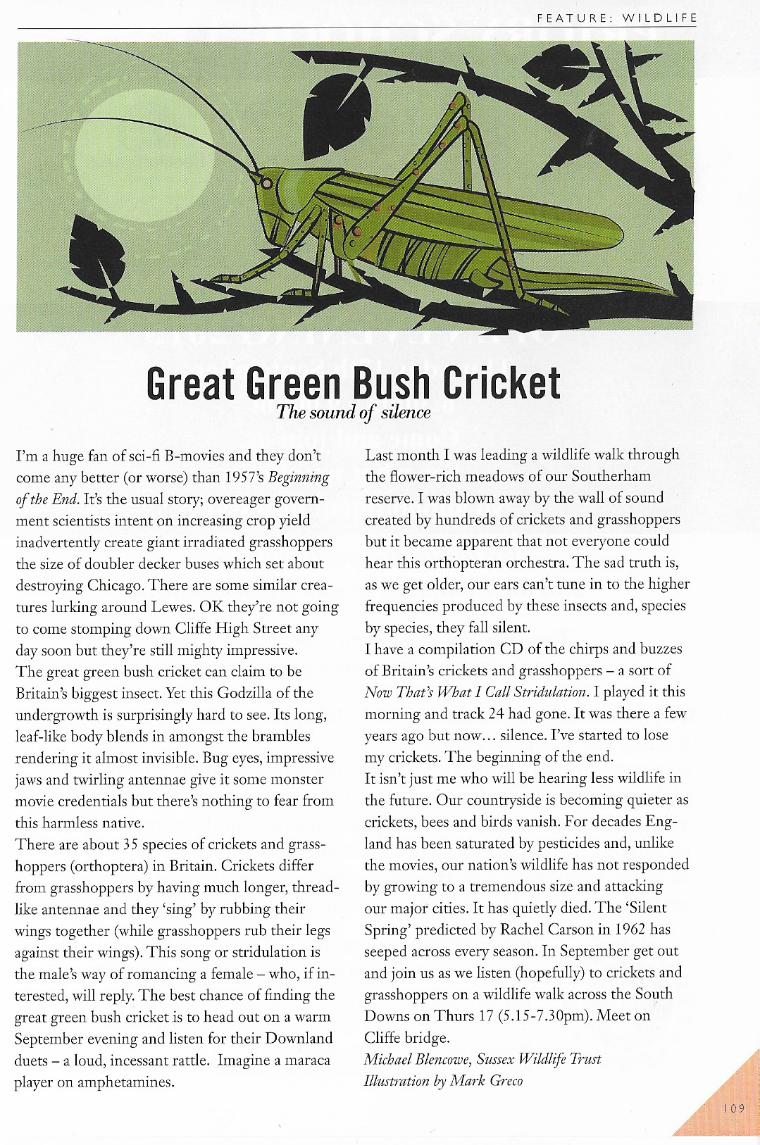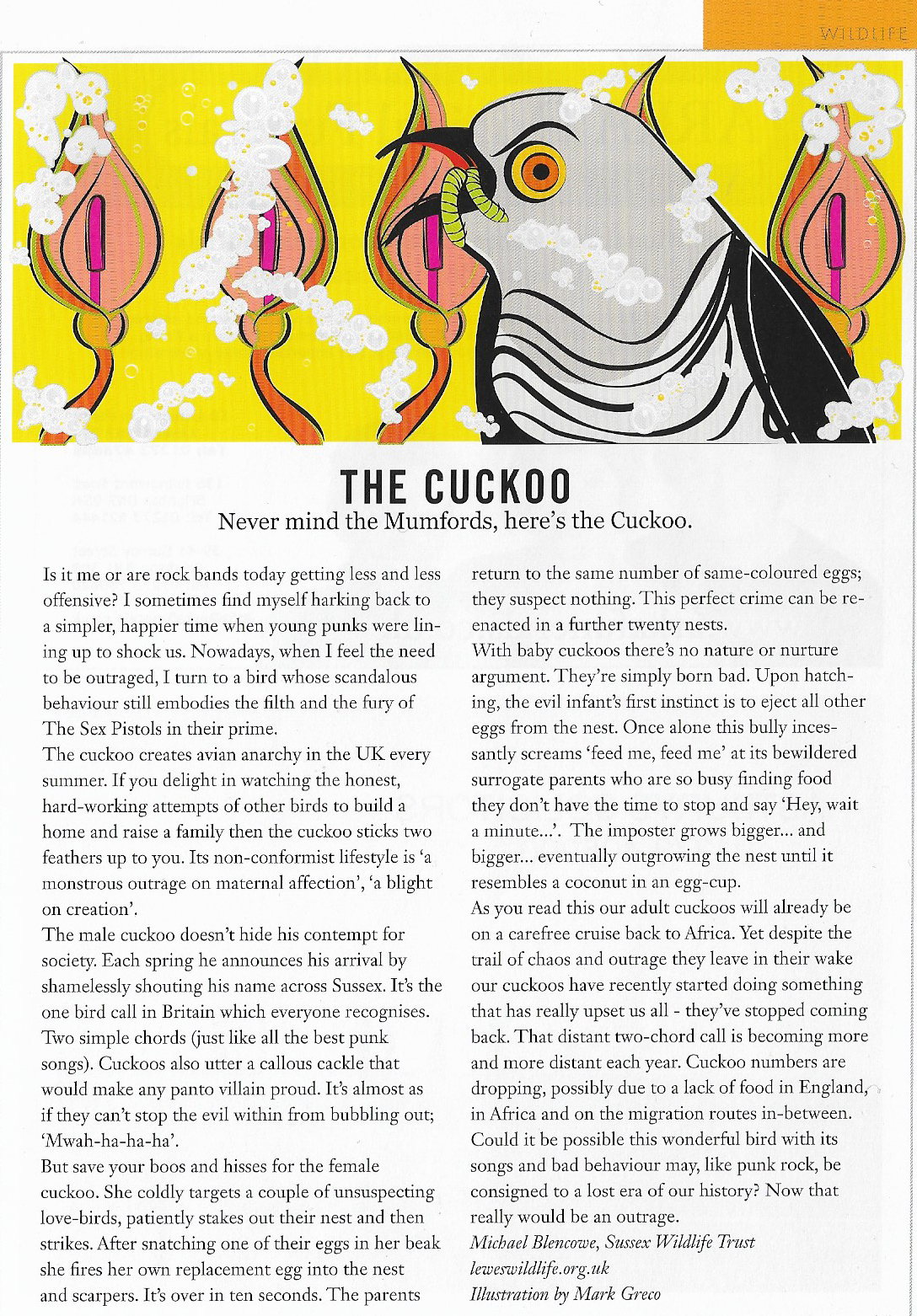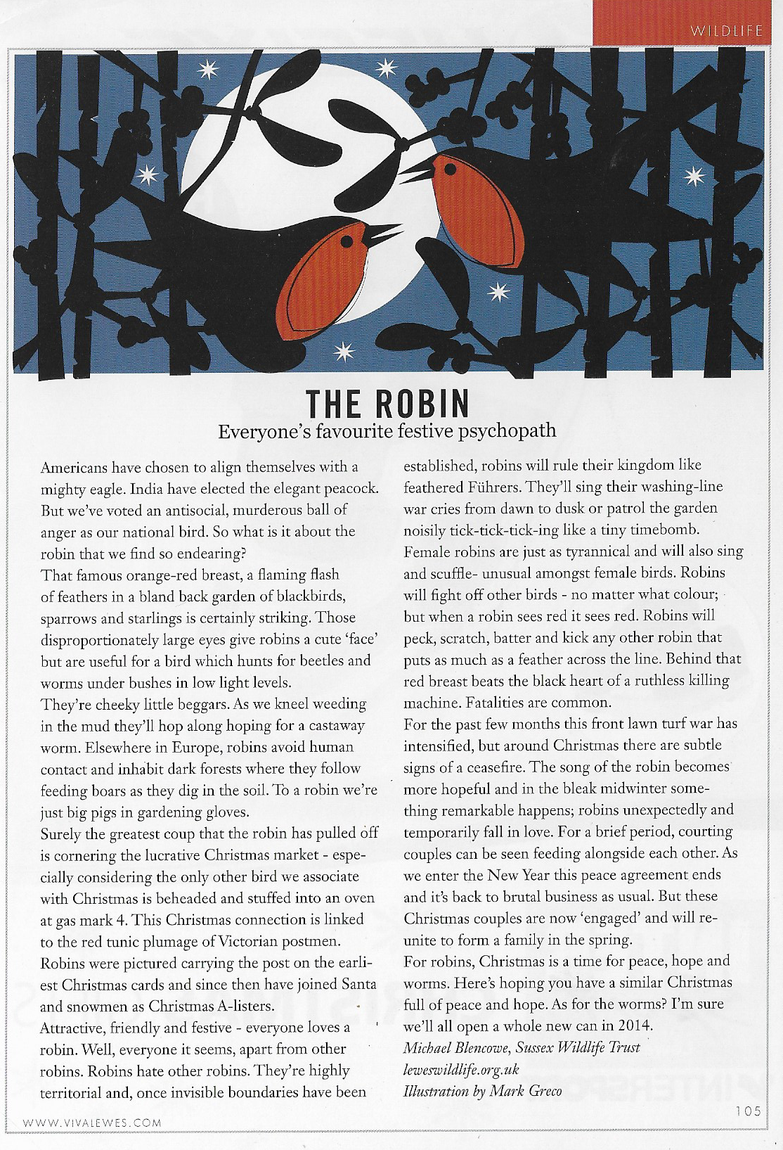 Michael was the monthly wildlife columnist for the much loved (and much missed) Viva Lewes magazine writing 106 articles from 2012 until its final edition in 2020. Each of Michael’s articles highlighted a local species and was accompanied by a brilliant, unique illustration by local wildlife artist Mark Greco. https://www.markgrecodesign.com/